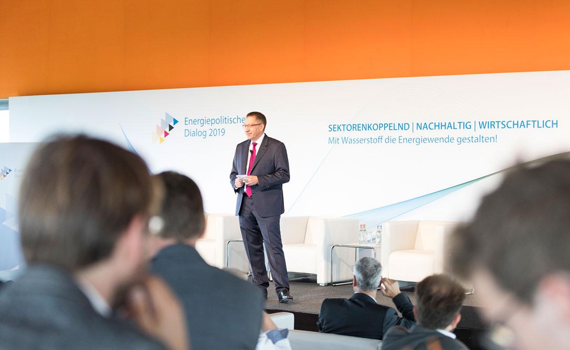 Michael Theben erklärte als Vertreter des Wirtschafts- und Energieministeriums NRW, dass die Landesregierung im Rahmen der Energiewende klar auf Wasserstoff setzt und dazu aktuell eine Wasserstoff-Roadmap ausarbeitet.