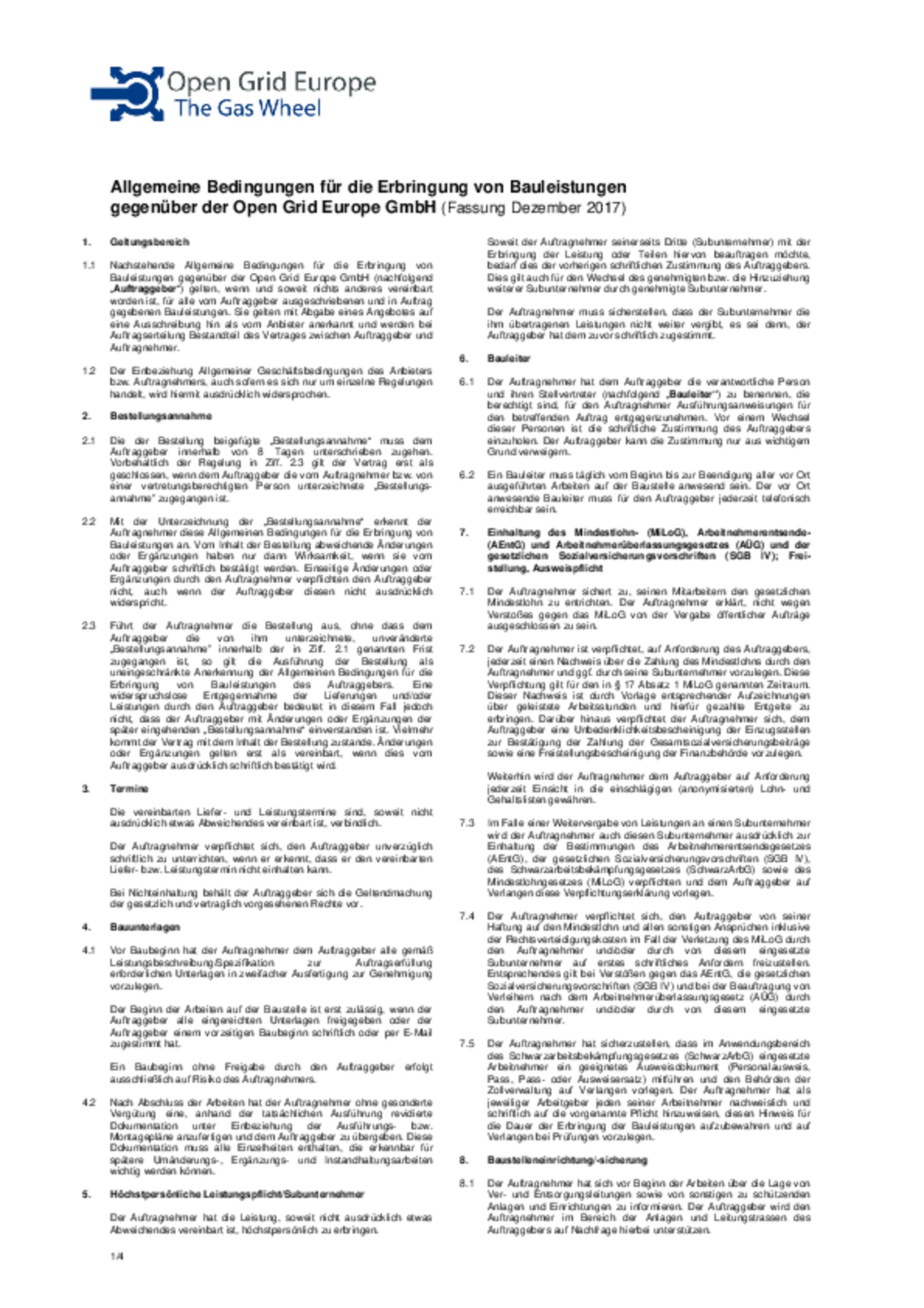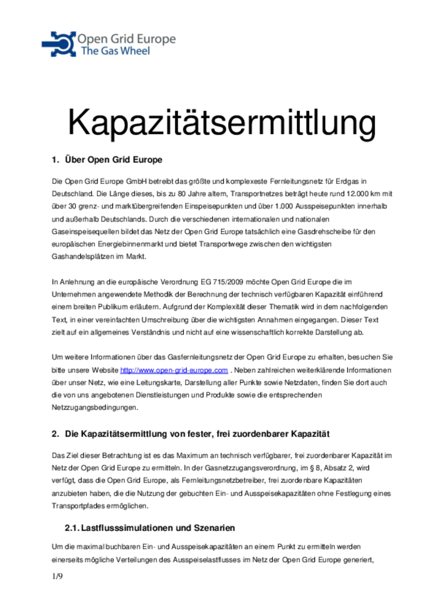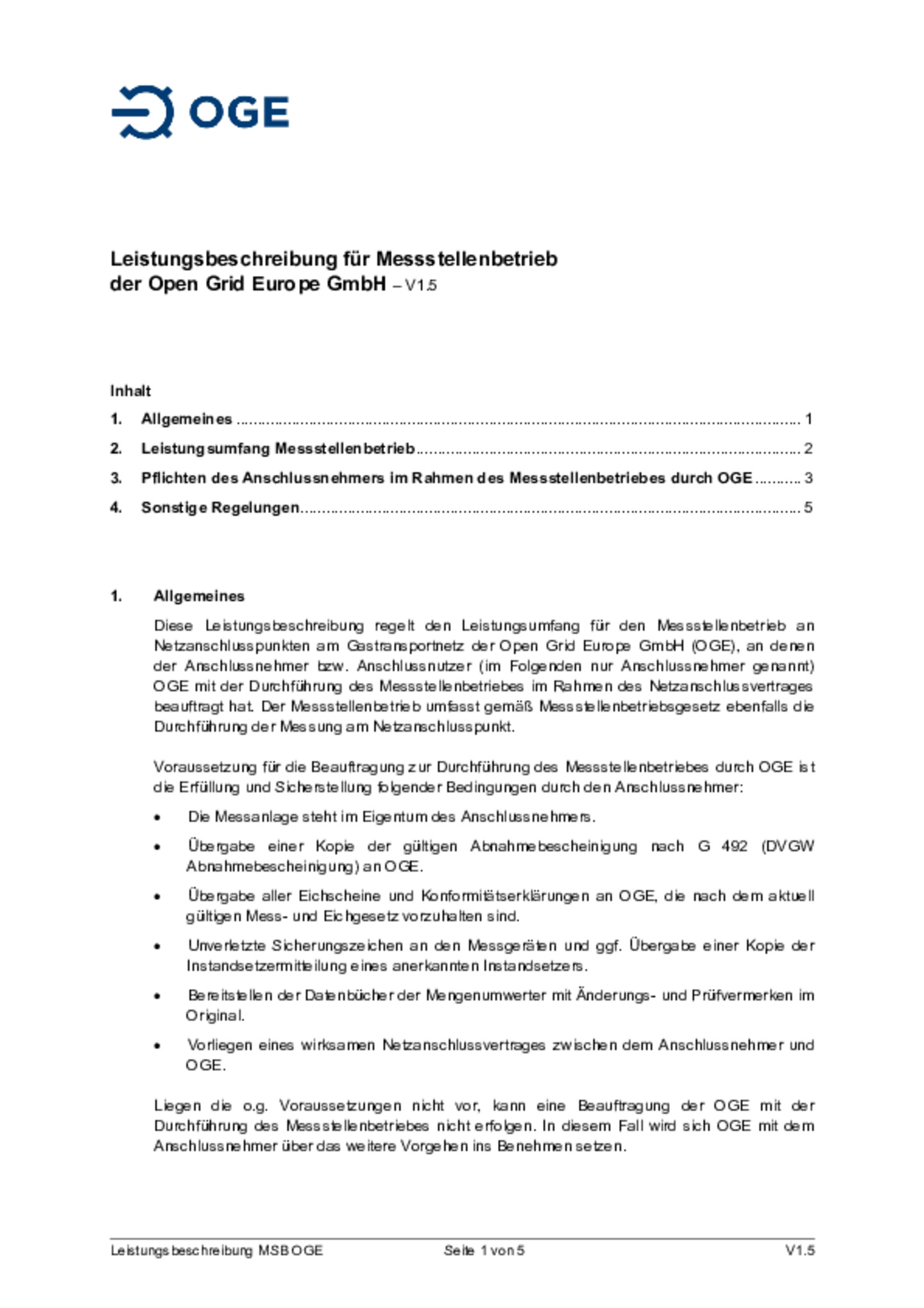 Sofern Open Grid Europe mit der Durchführung des Messstellenbetriebes an Netzanschlusspunkten beauftragt wurde, erbringt Open Grid Europe diese Dienstleistung gemäß der veröffentlichten …Leistungsbeschreibung für Messstellenbetrieb.