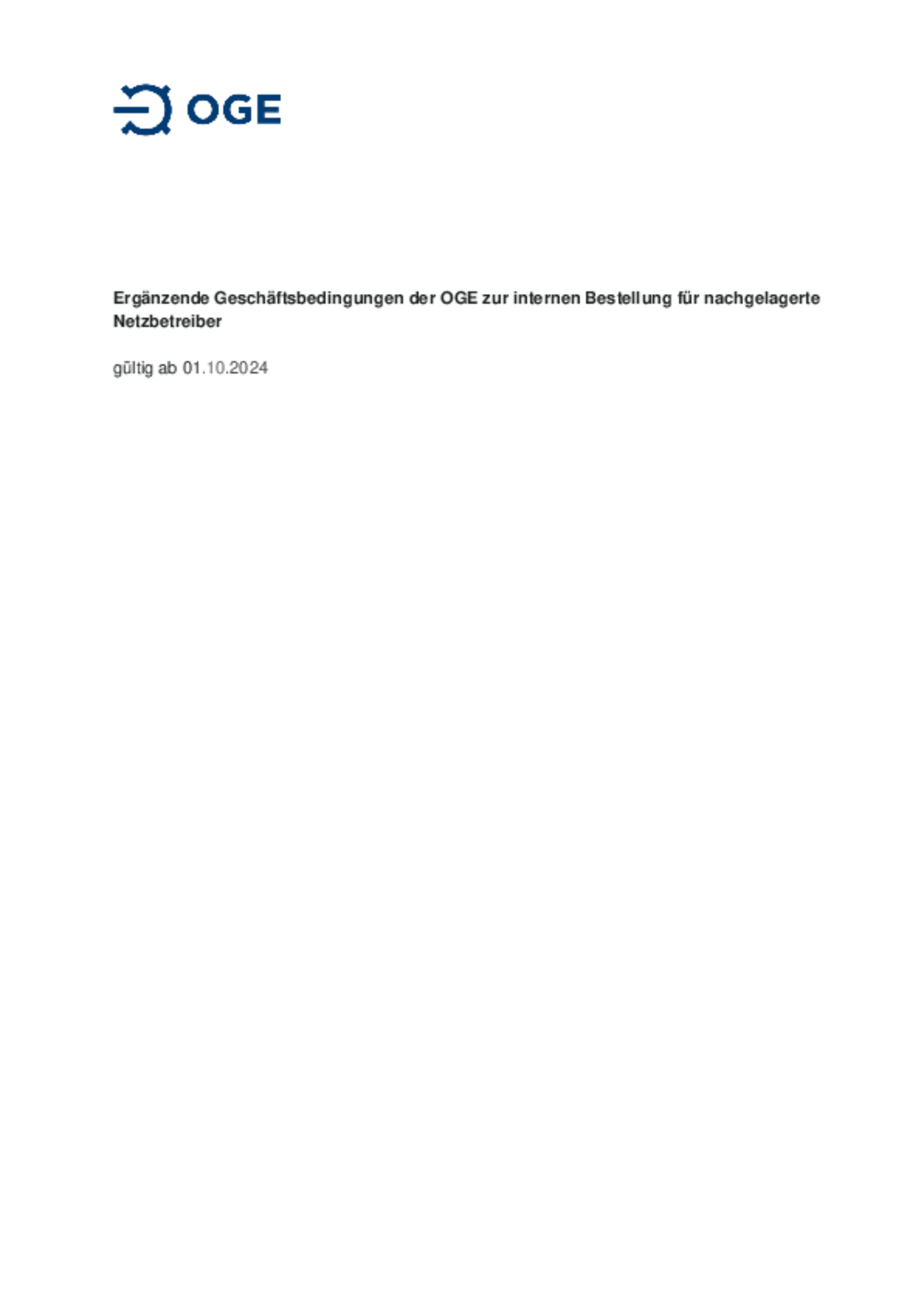 Ergänzende Geschäftsbedingungen der Open Grid Europe GmbH zur internen Bestellung für nachgelagerte Netzbetreiber ab 01.10.2024 (veröffentlicht am 01.08.2024)