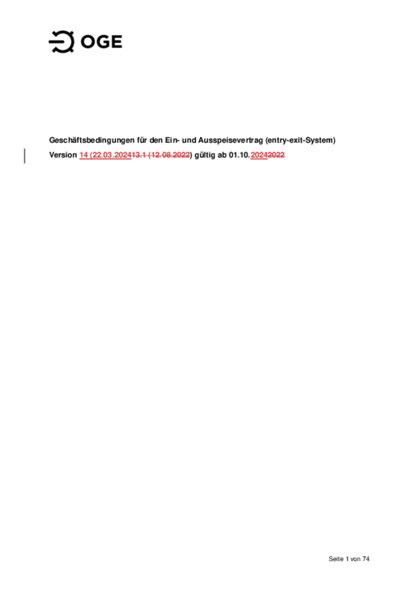 Geschäftsbedingungen für den Ein- und Ausspeisevertrag (entry-exit-System), gültig ab 01.10.2024
