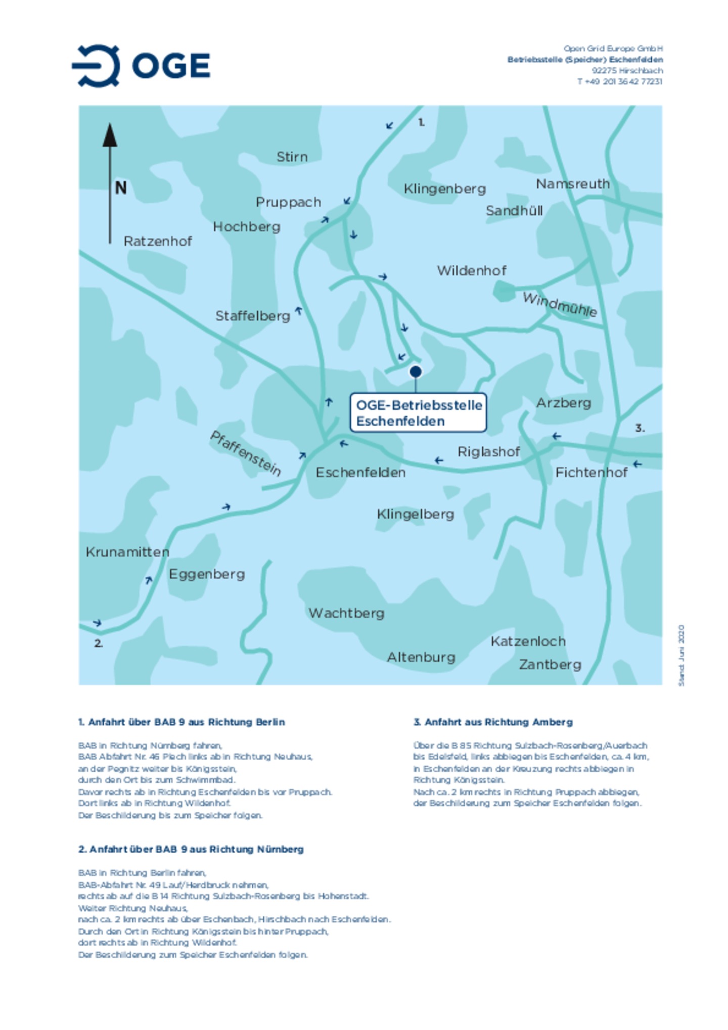 Anfahrtsskizze zur Betriebsstelle und Speicher Eschenfelden