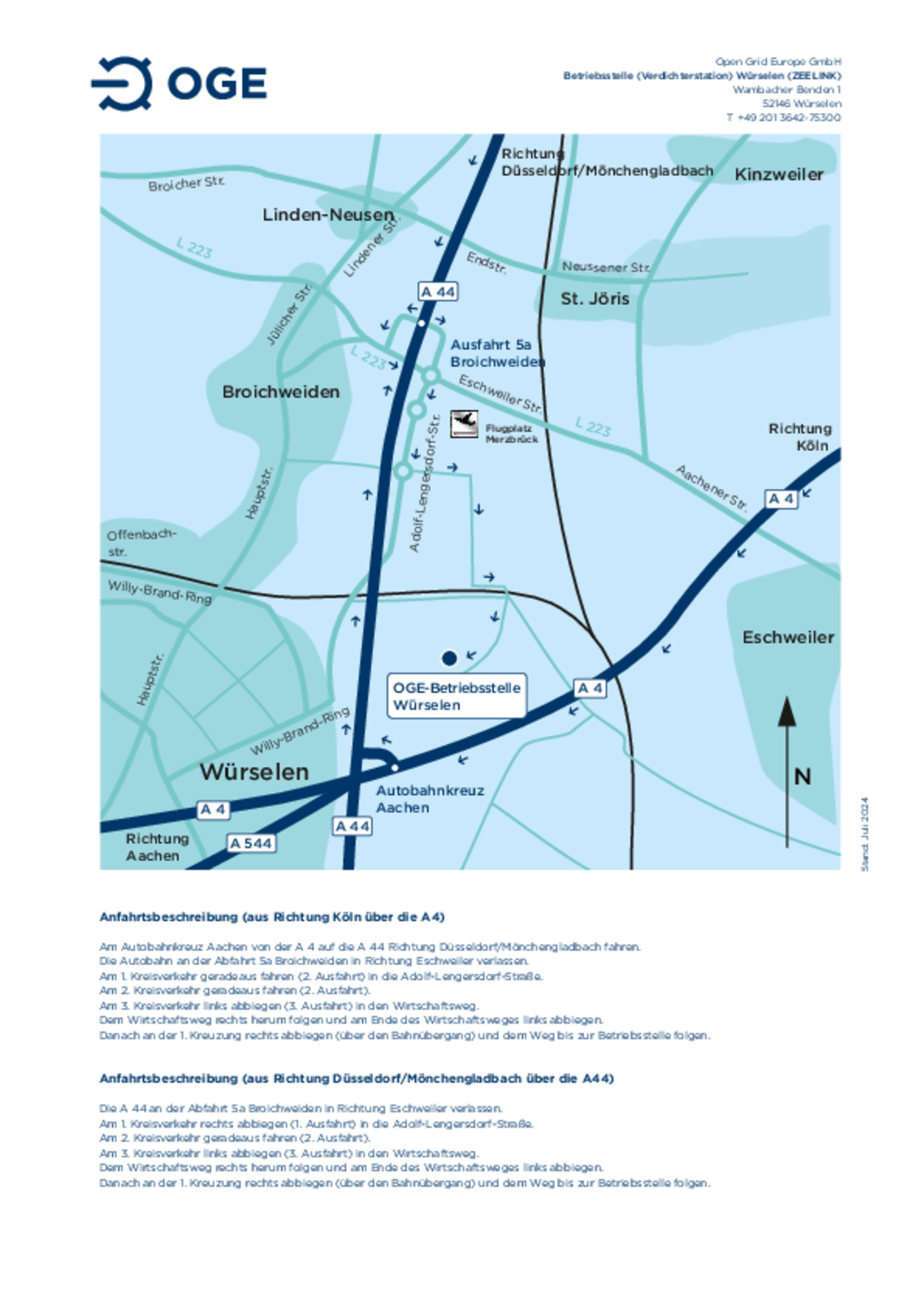 Anfahrtsskizze zur Betriebsstelle und Verdichterstation Würselen (Zeelink)