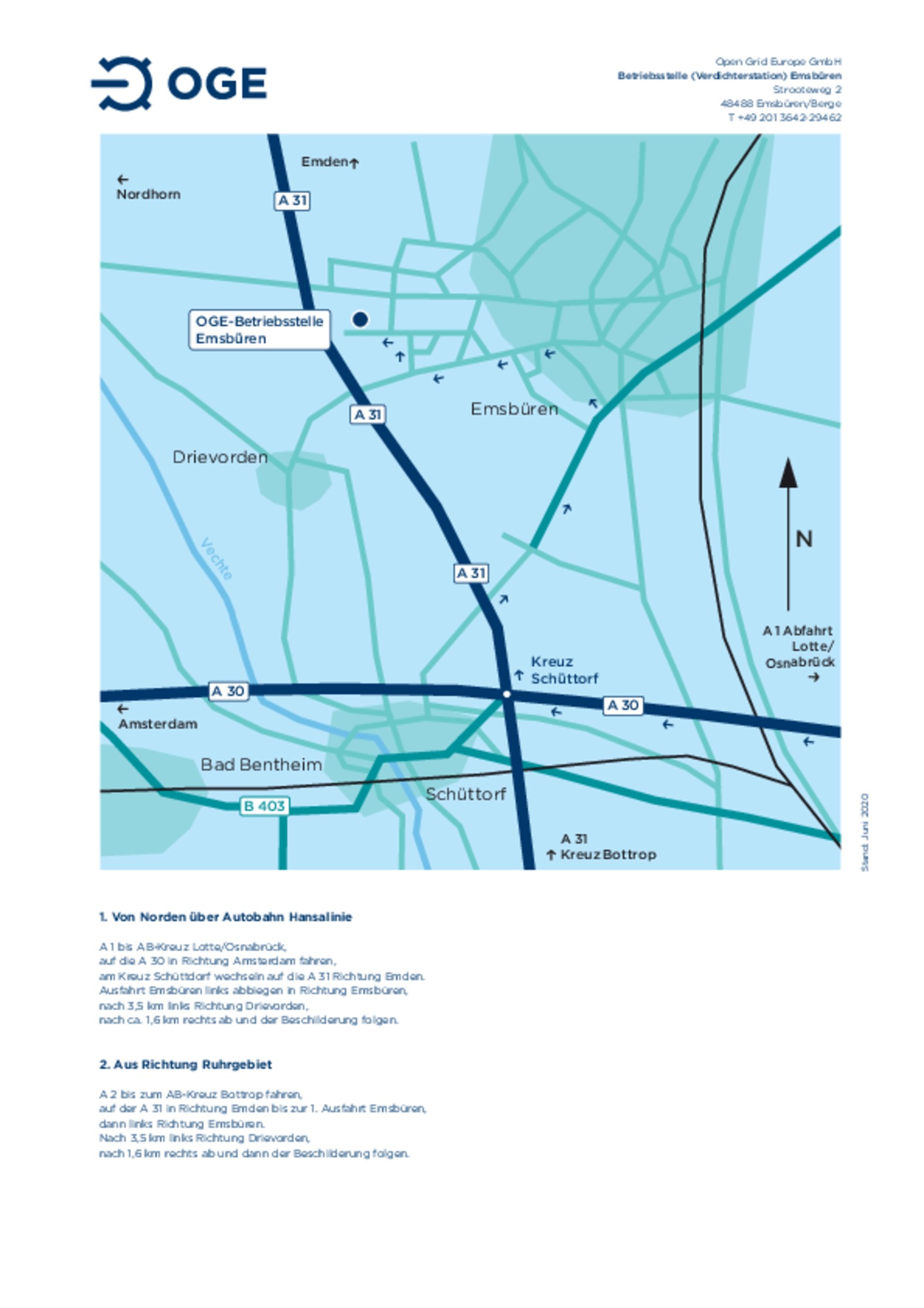 Anfahrtsskizze zur Betriebsstelle und Verdichterstation Emsbüren
