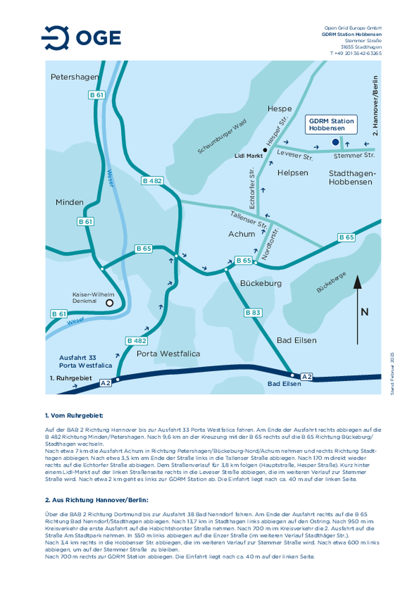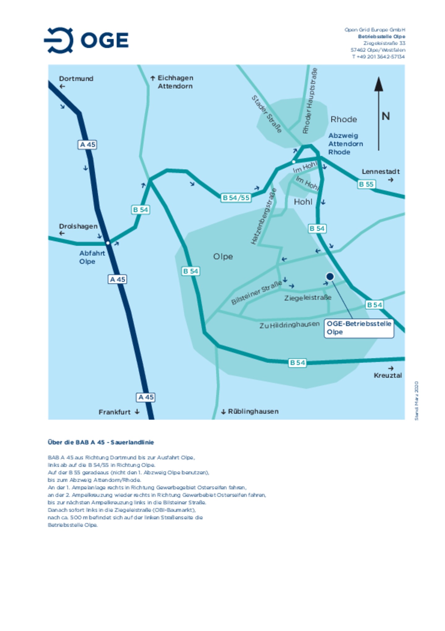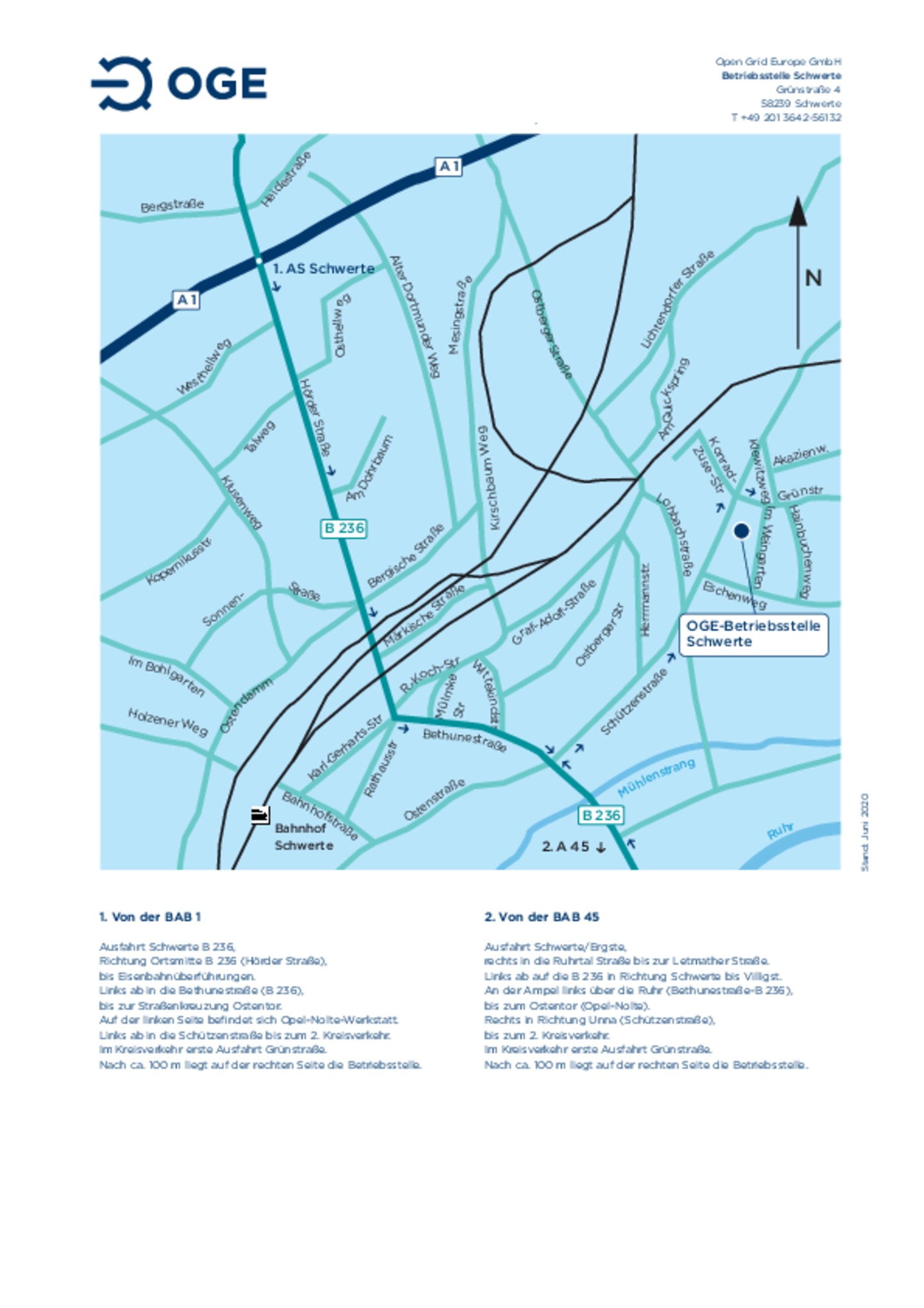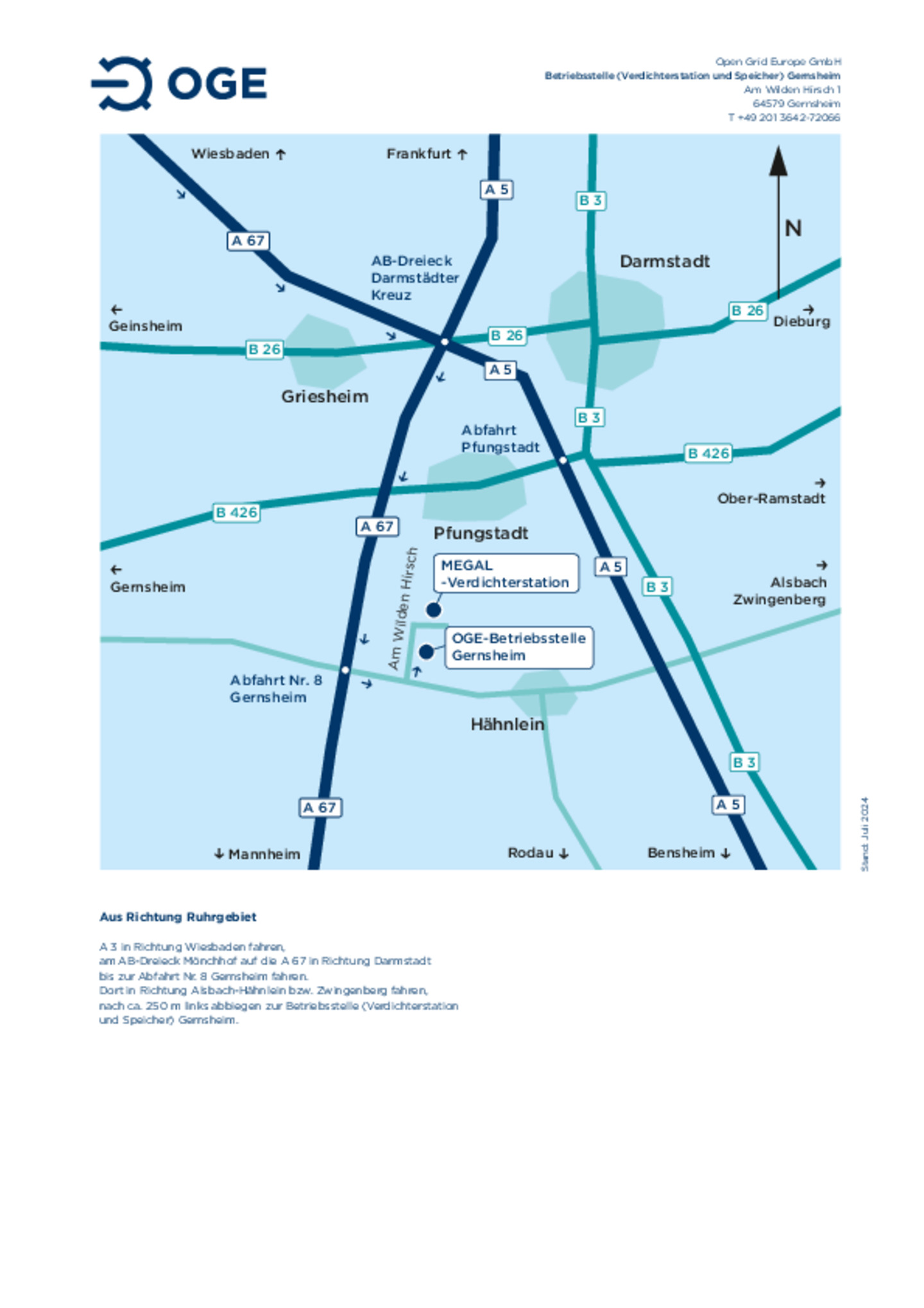 Anfahrtsskizze zur Hauptverwaltung der OGE