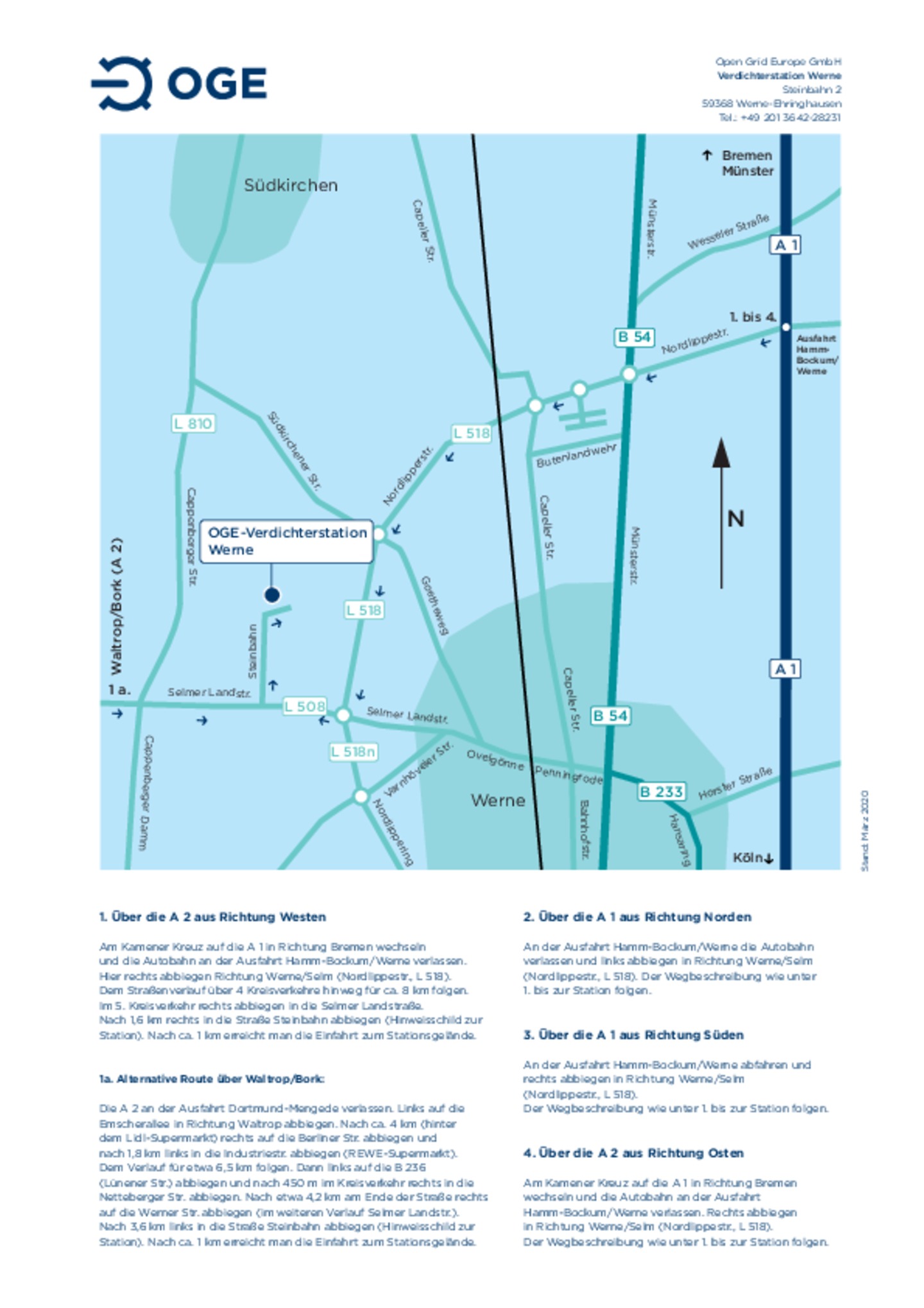 Anfahrtsskizze zur Betriebsstelle und Verdichterstation Werne