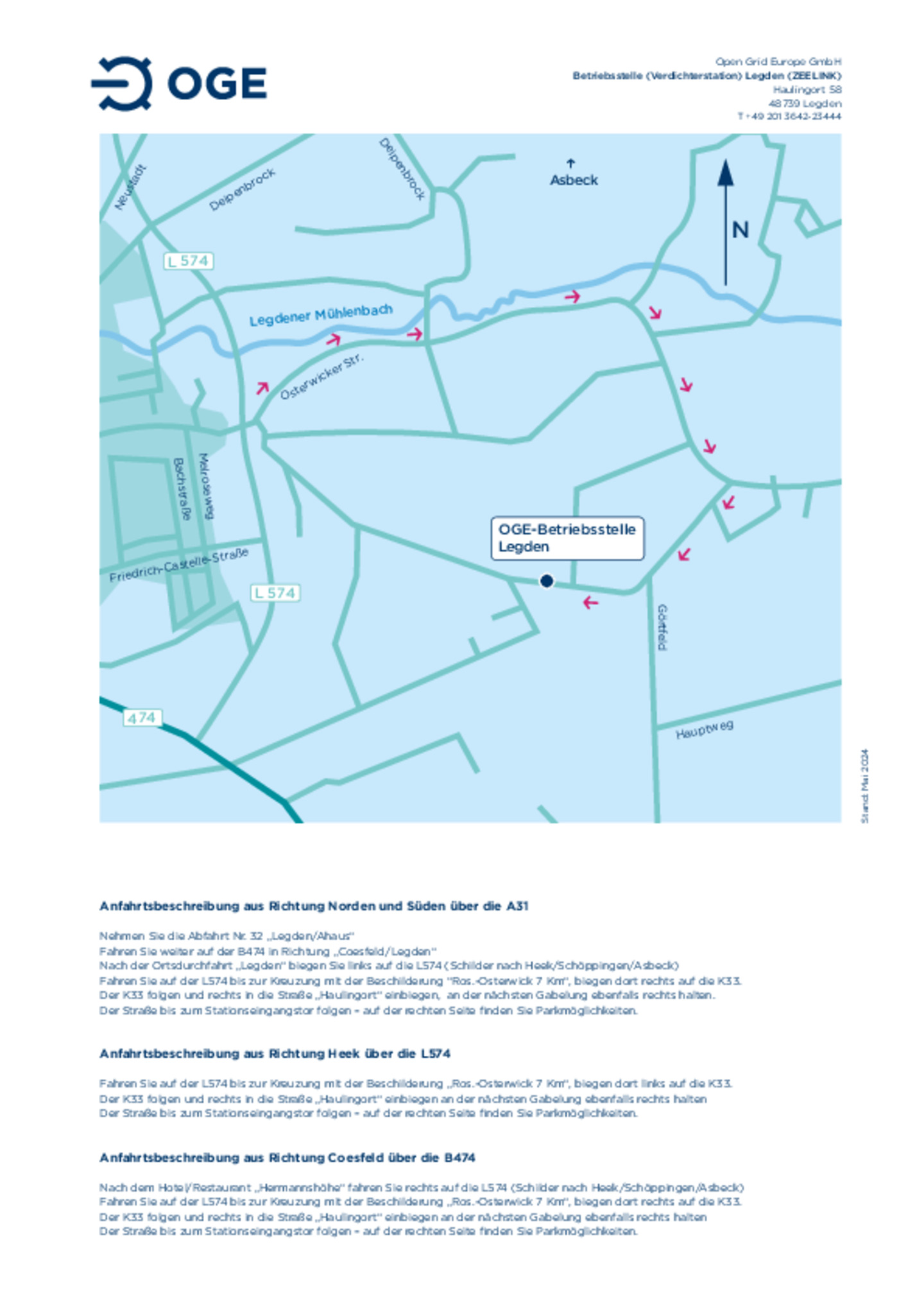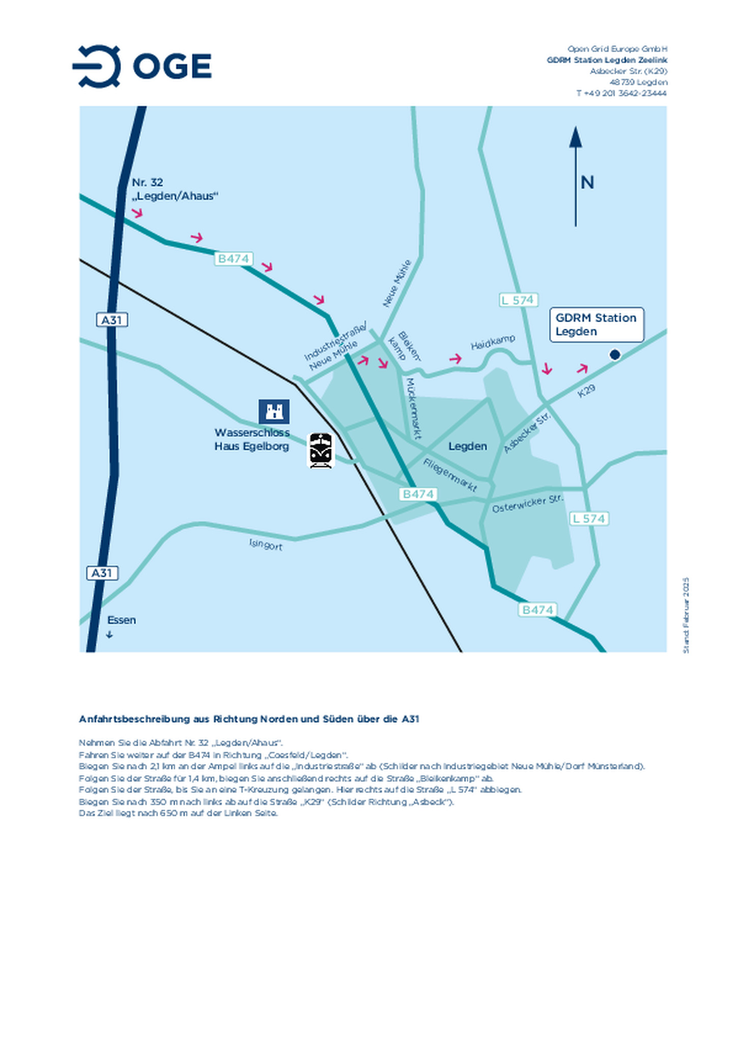 Anfahrtsskizze zum Logstik-Center der OGE in Dorsten auf dem Betriebsgelände der pigsar™
