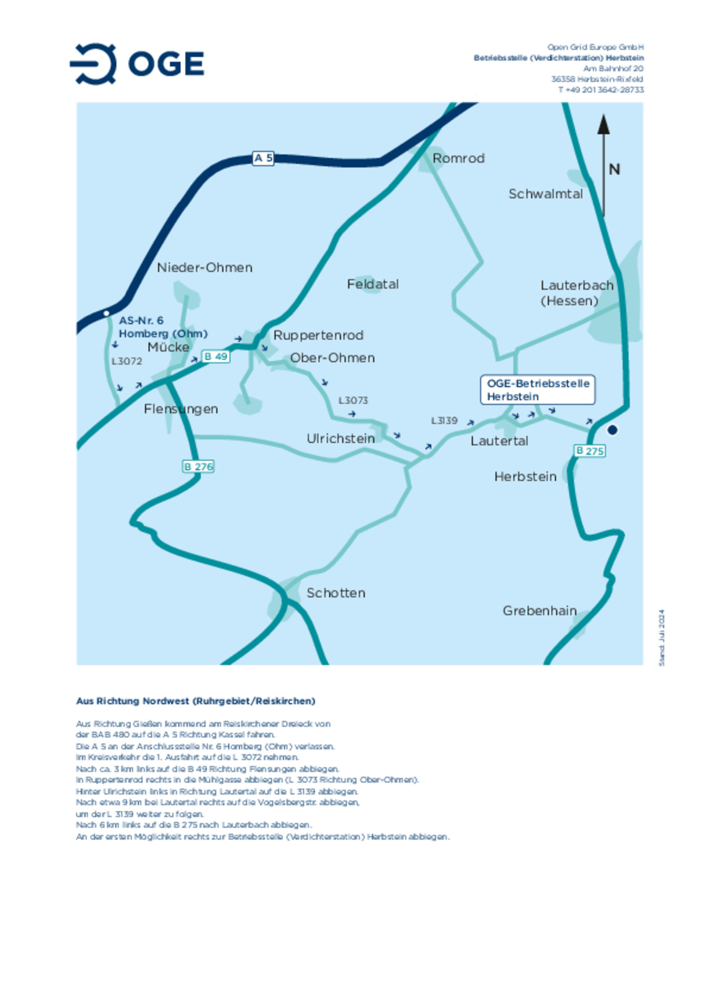 Anfahrtsskizze zur Betriebsstelle und Verdichterstation Herbstein