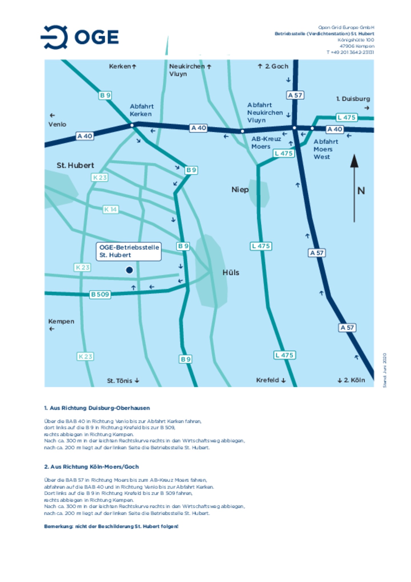 Anfahrtsskizze zur Betriebsstelle und Verdichterstation St. Hubert