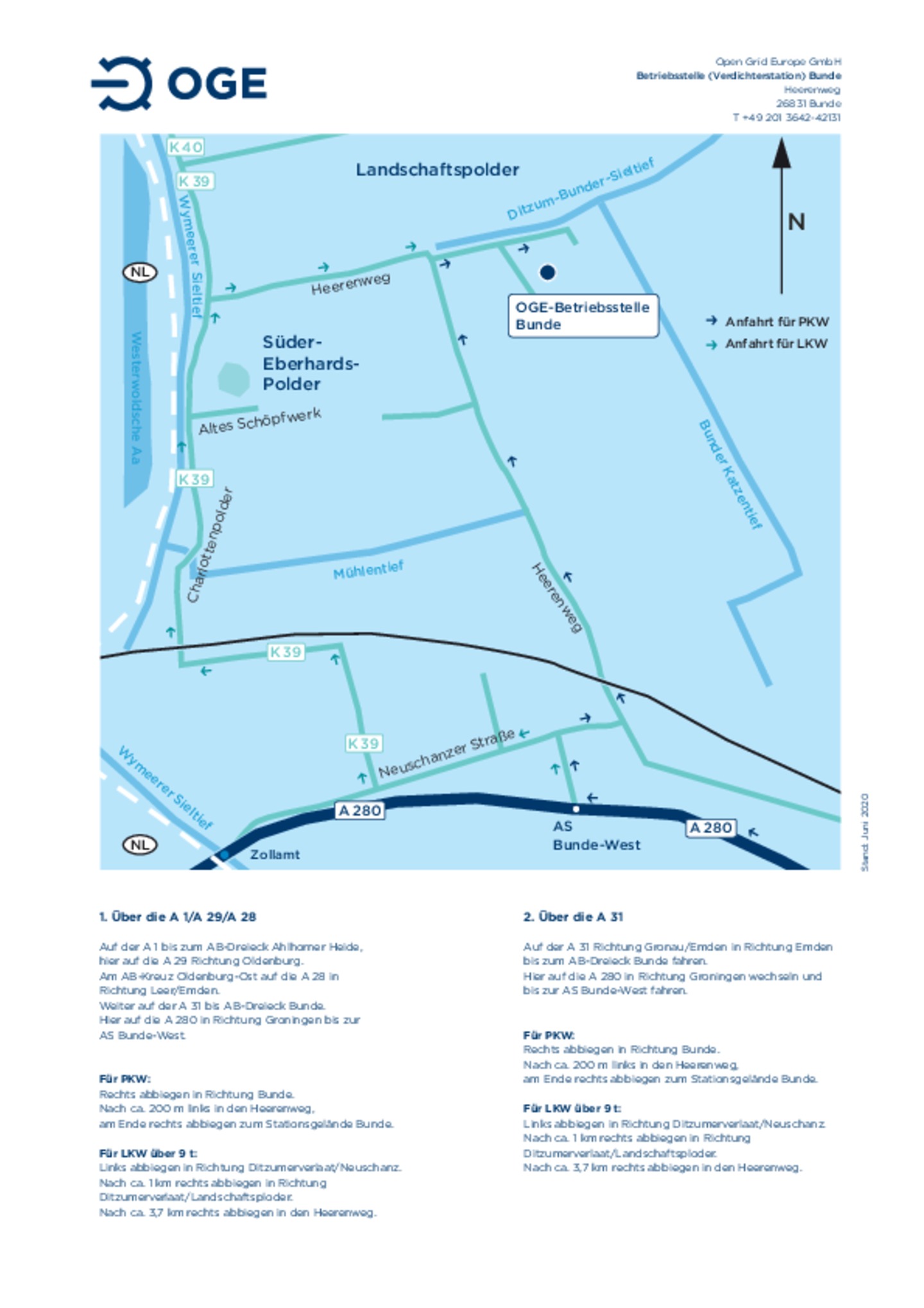 Anfahrtsskizze zur Betriebsstelle/Verdichterstation/Speicher Krummhörn