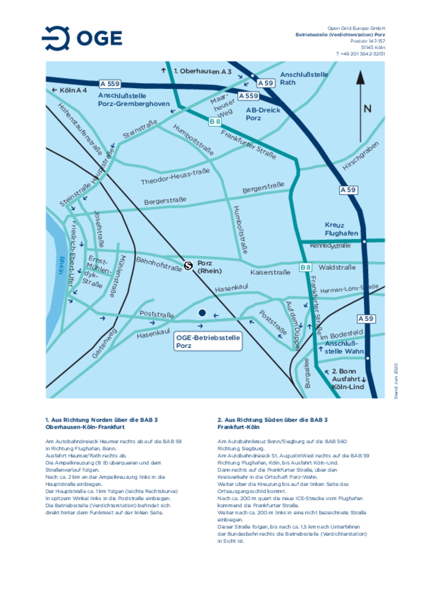 Anfahrtsskizze zur Betriebsstelle und Verdichterstation Porz