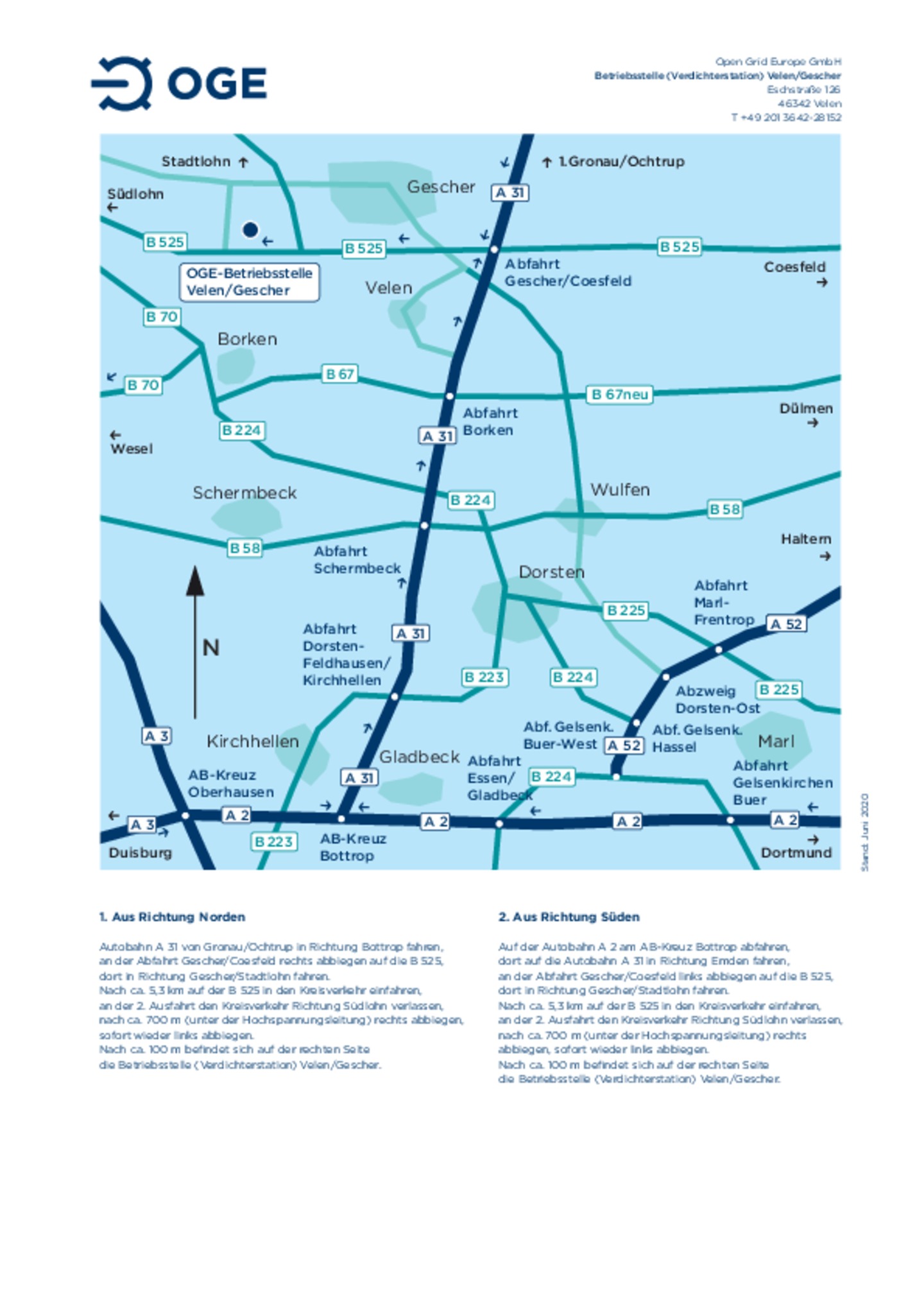 Anfahrtsskizze zur Betriebsstelle und Verdichterstation Velen