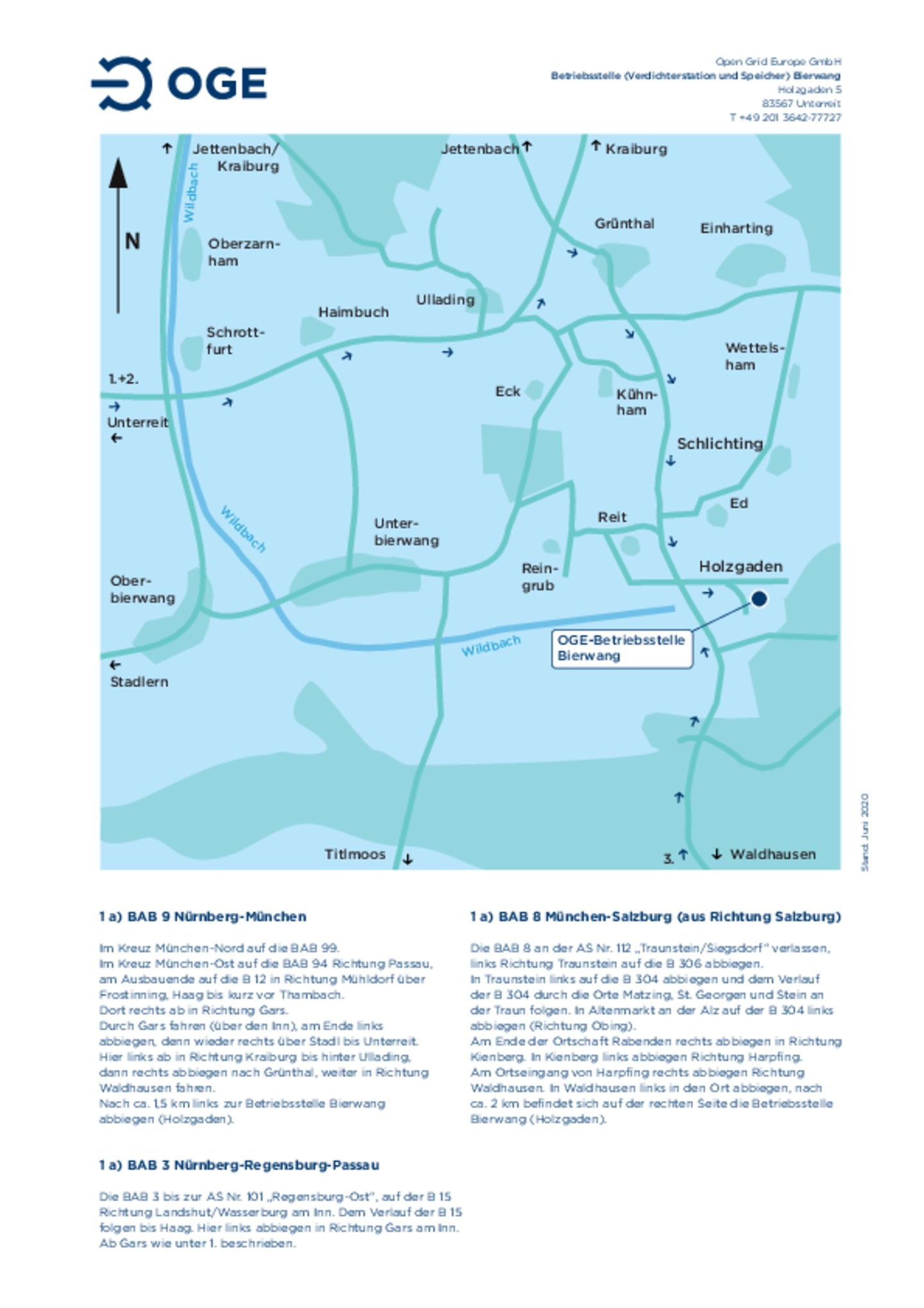 Anfahrtsskizze zur Betriebsstelle/Verdichterstation/Speicher Bierwang