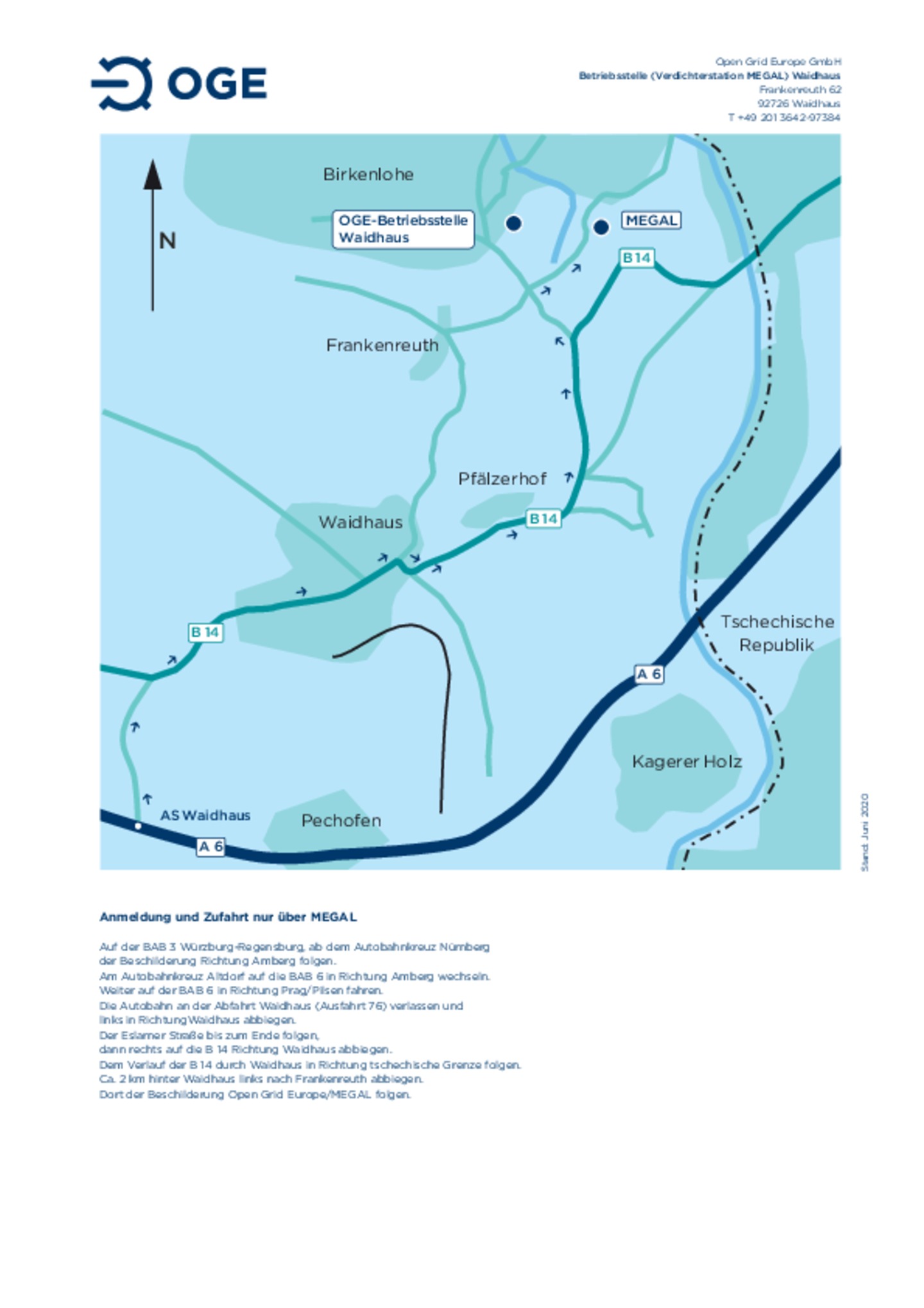 Anfahrtsskizze zur Betriebsstelle und Verdichterstation Waidhaus