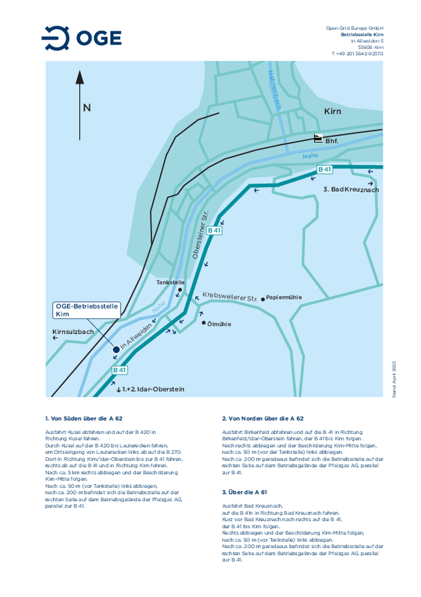 Anfahrtsskizze zur Betriebsstelle Kirn