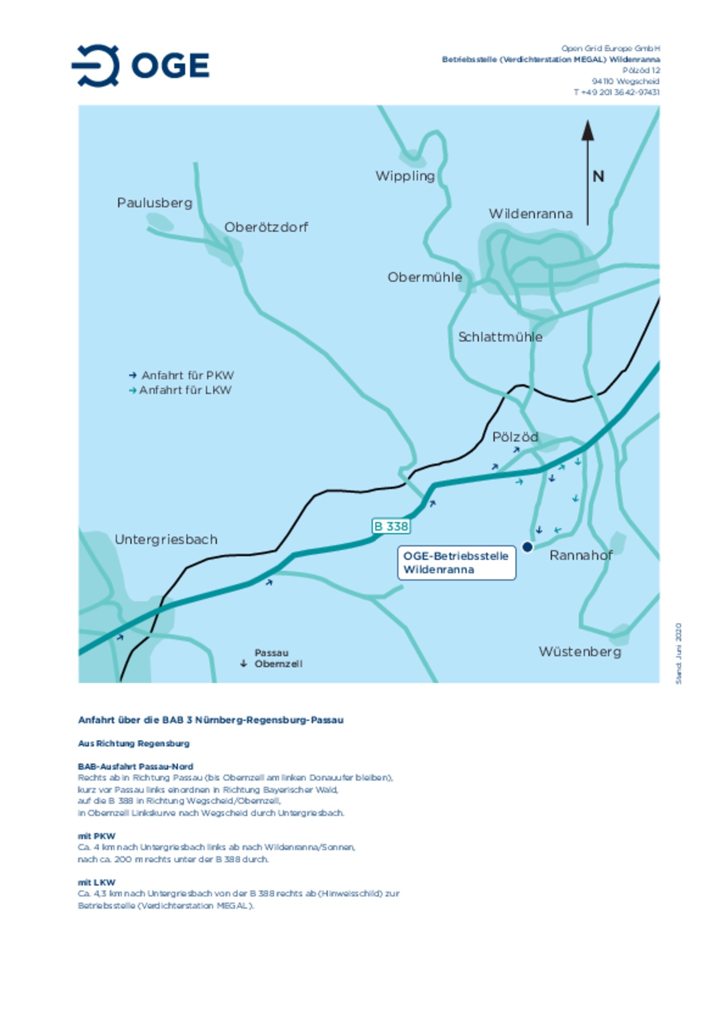 Anfahrtsskizze zur Betriebsstelle und Verdichterstation Schwarzach