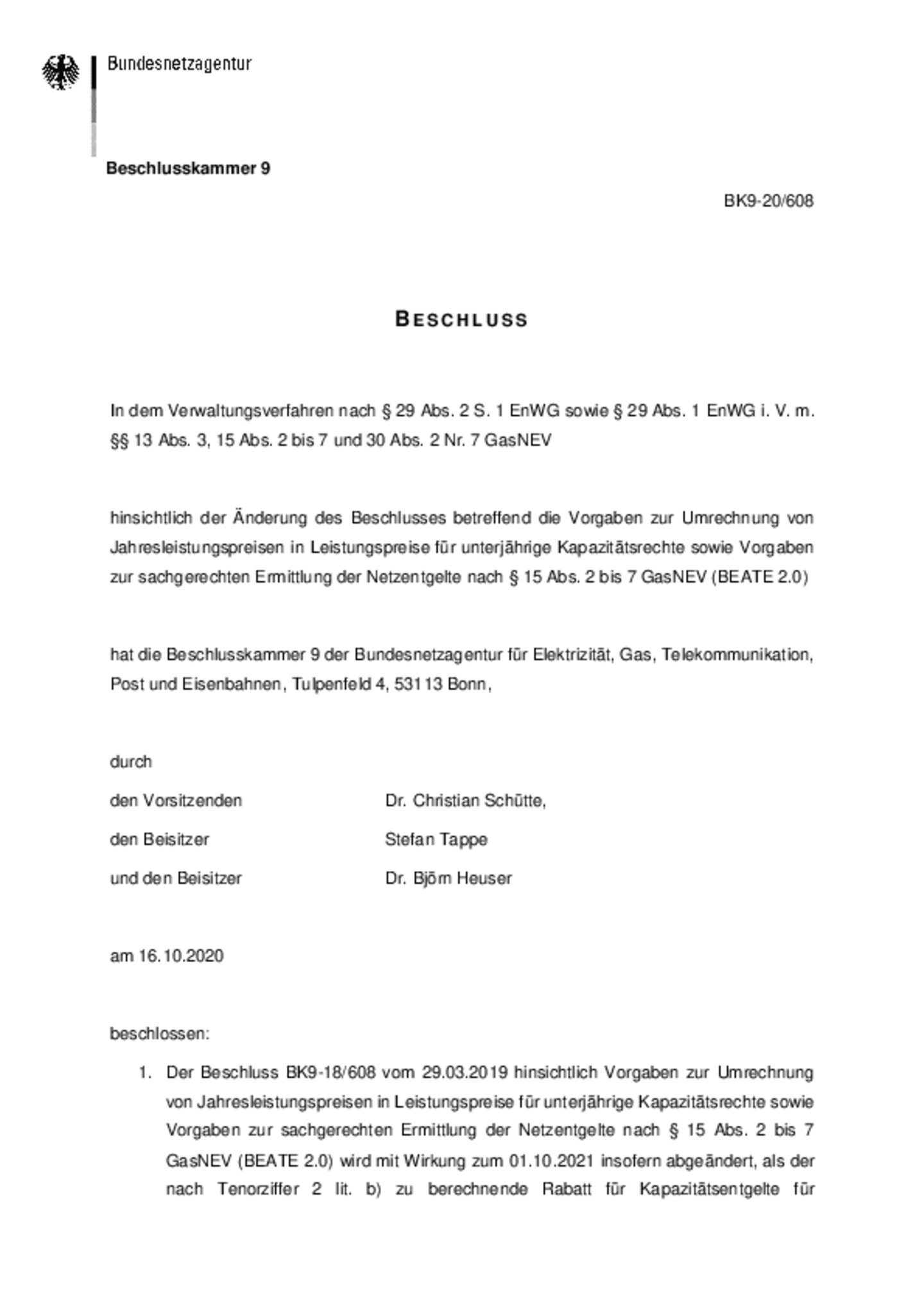 Publication by Open Grid Europe GmbH according to the network code on harmonised transmission tariff structures (Regulation (EU) 2017/460)