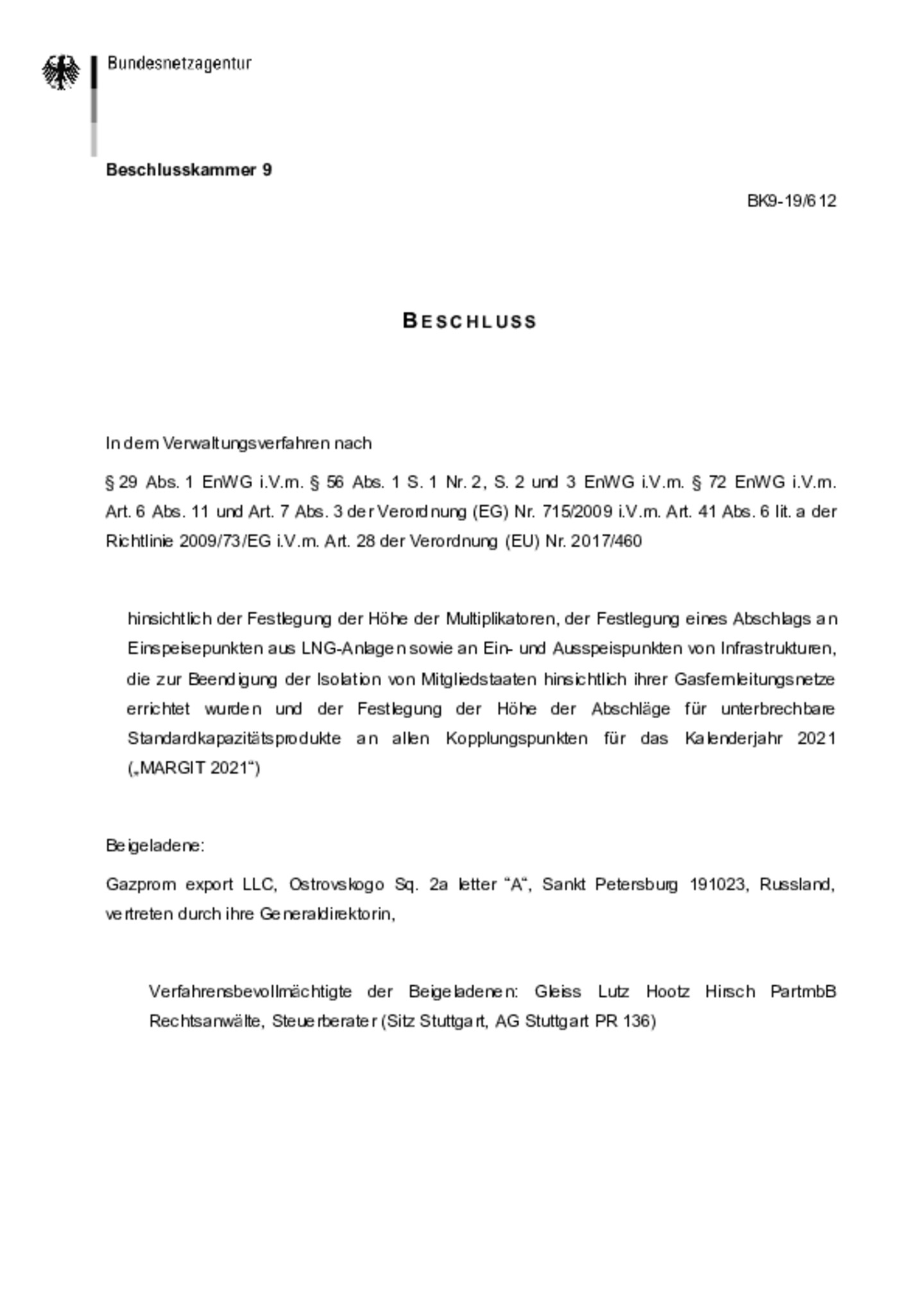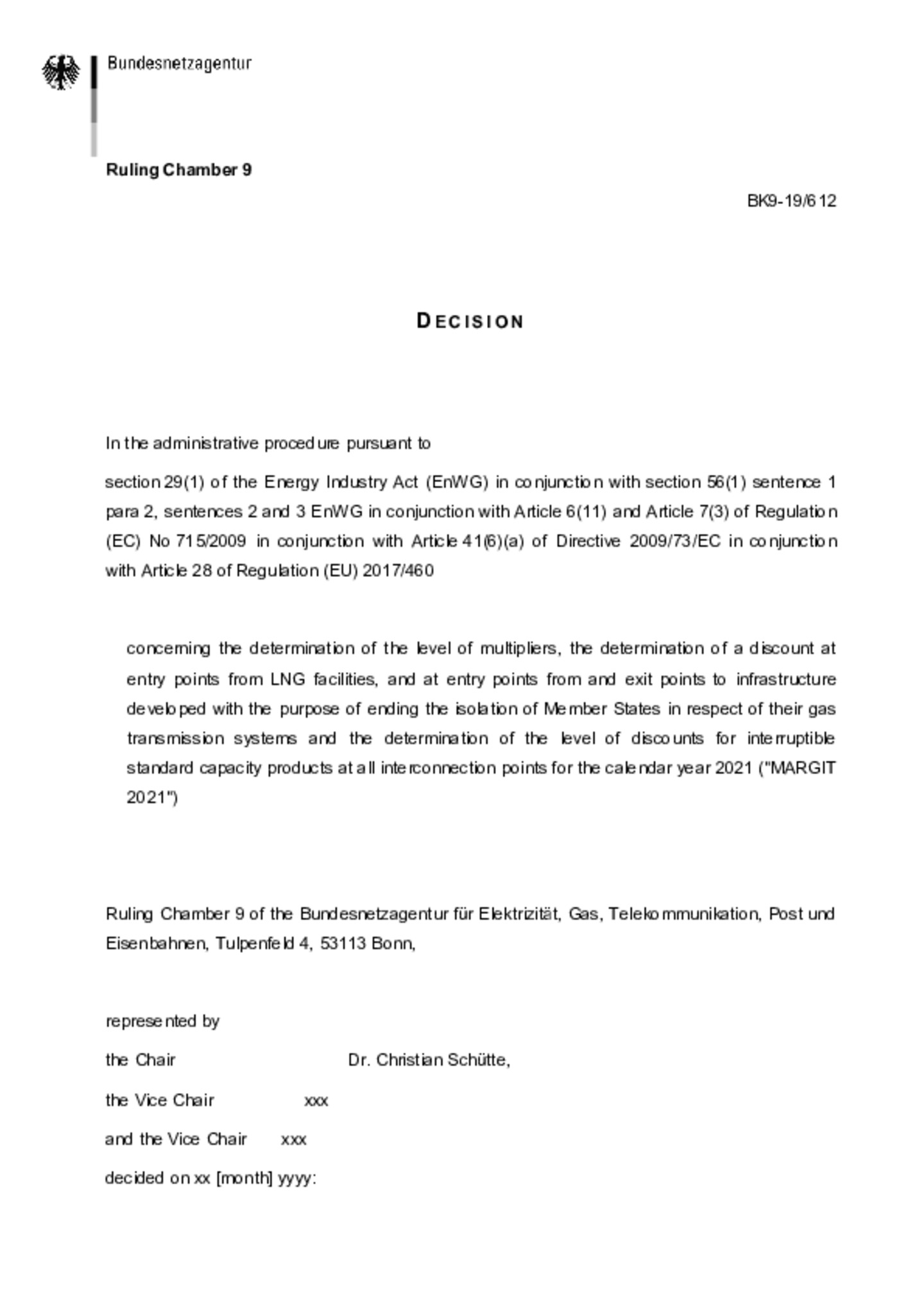 Ruling of the Federal Network Agency BK9-18/612 – Methodolody to calculate the discounts