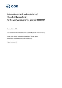 Information on tariff and multipliers of Open Grid Europe GmbH