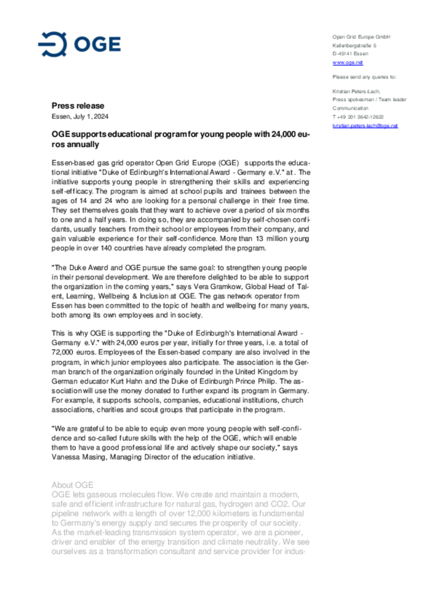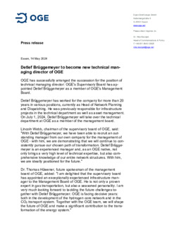 OGE has successfully arranged the succession for the position of technical managing director: On July 1, 2024, Detlef Brüggemeyer will take over the technical department at OGE as a member of the …management board.