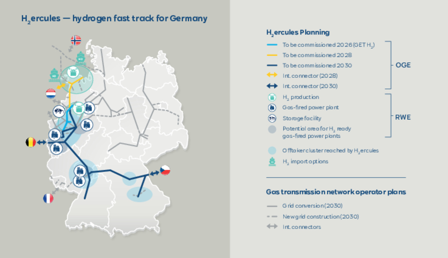Hydrogen fast track: OGE and RWE present national infrastructure concept “H₂ercules”