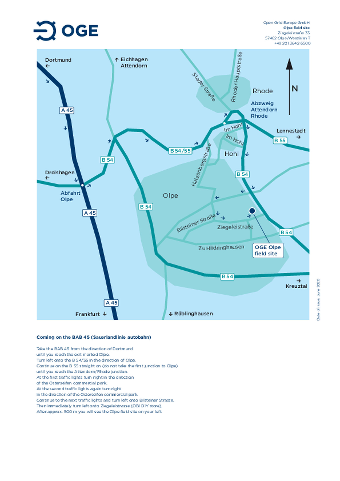 Directions to Field Station and Compressor Station Emsbüren