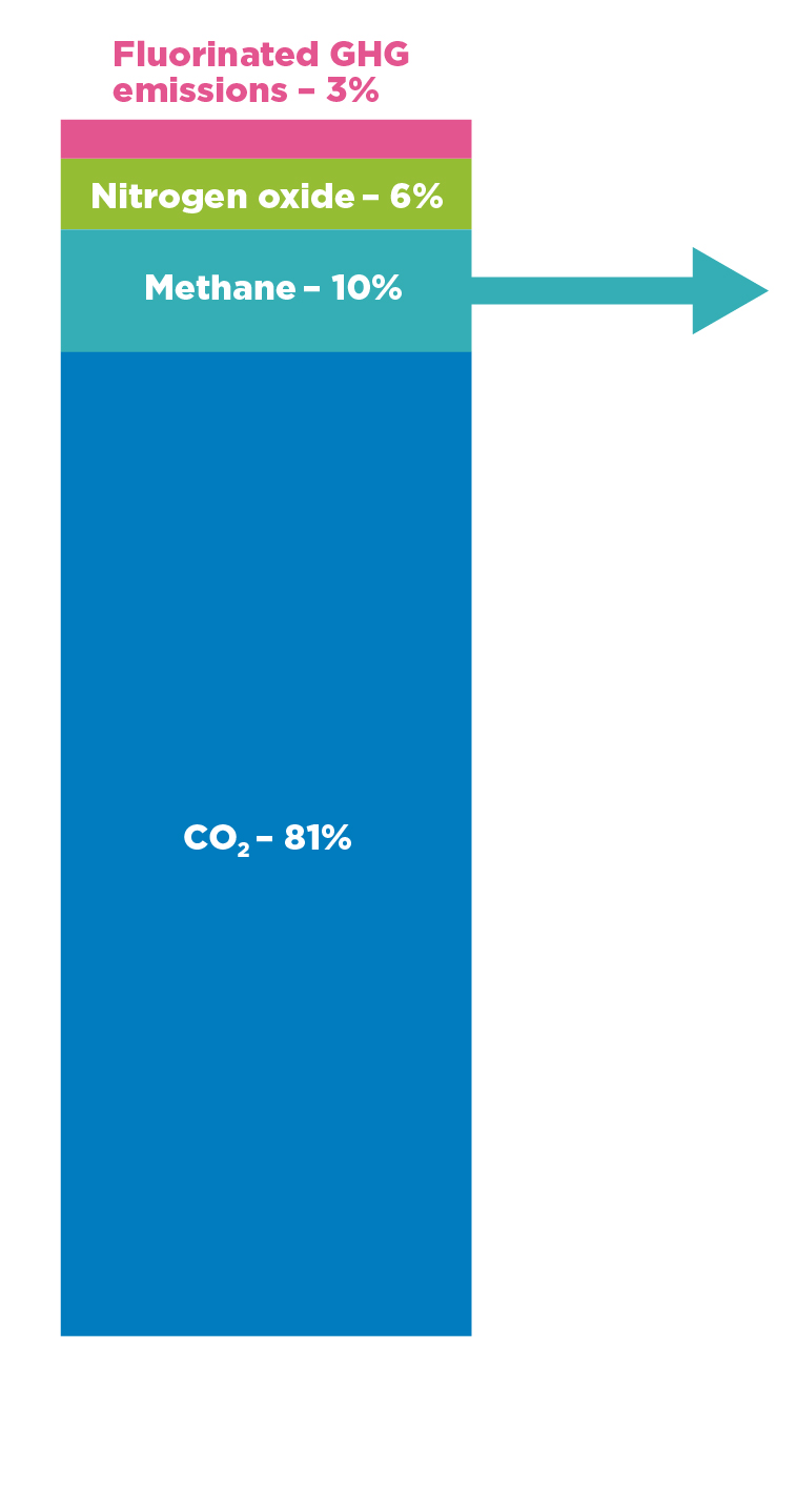 Percentage shares of all GHG emissions in Europe (2017)